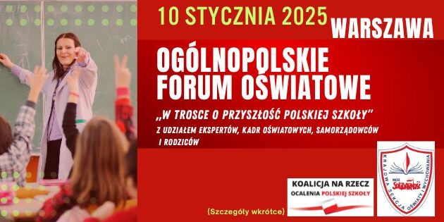 Zapraszamy 10.01 do Warszawy na Ogólnopolskie Forum Oświatowe! Razem ratujmy polską szkołę!