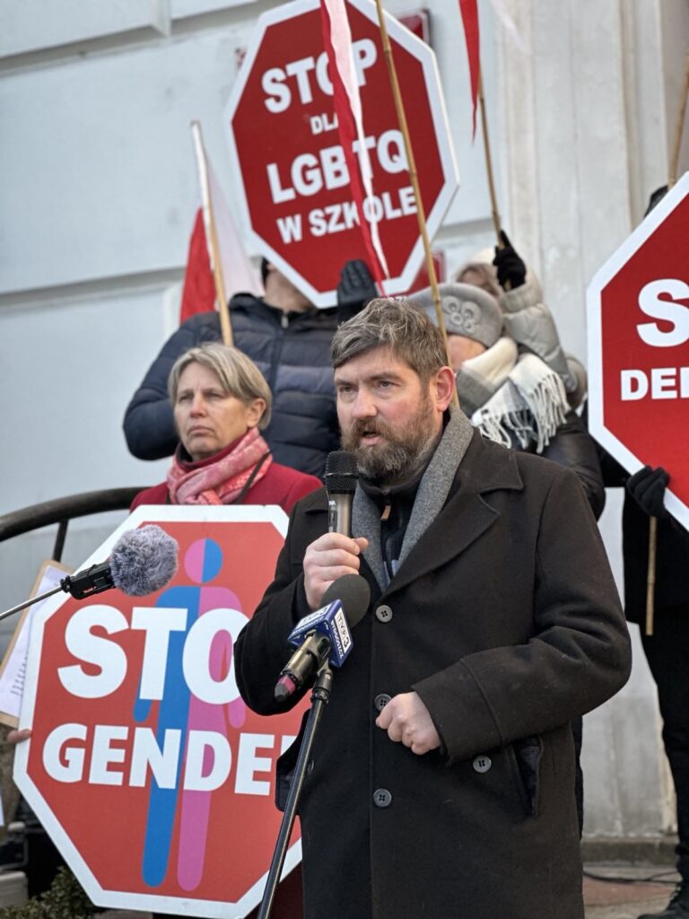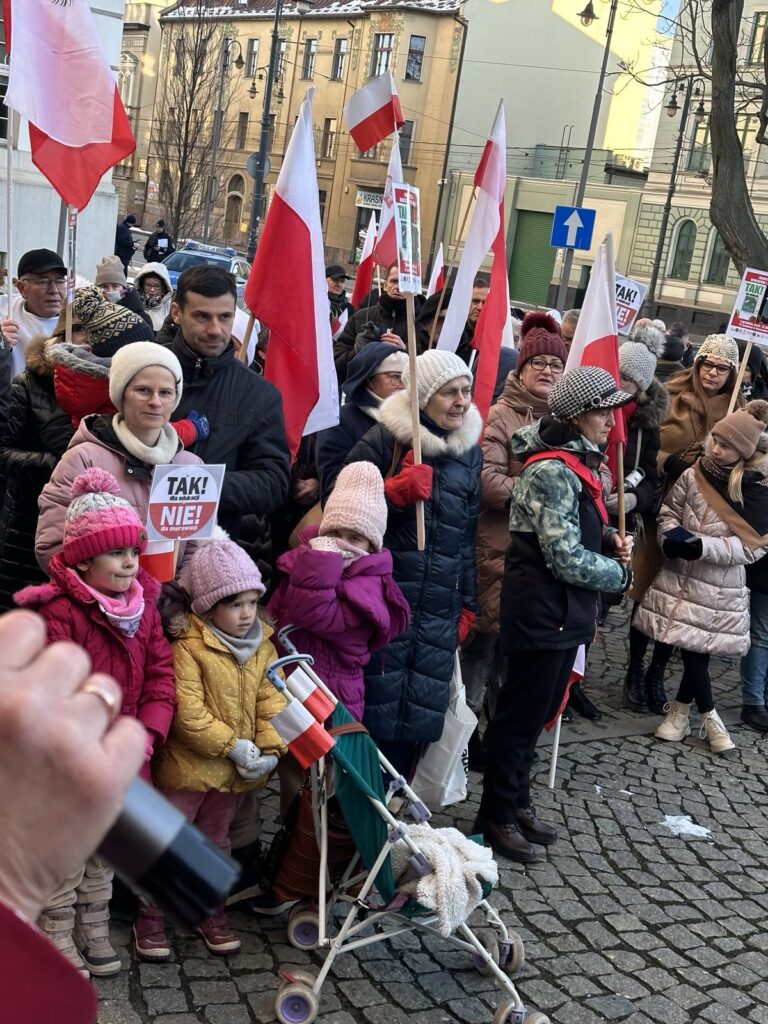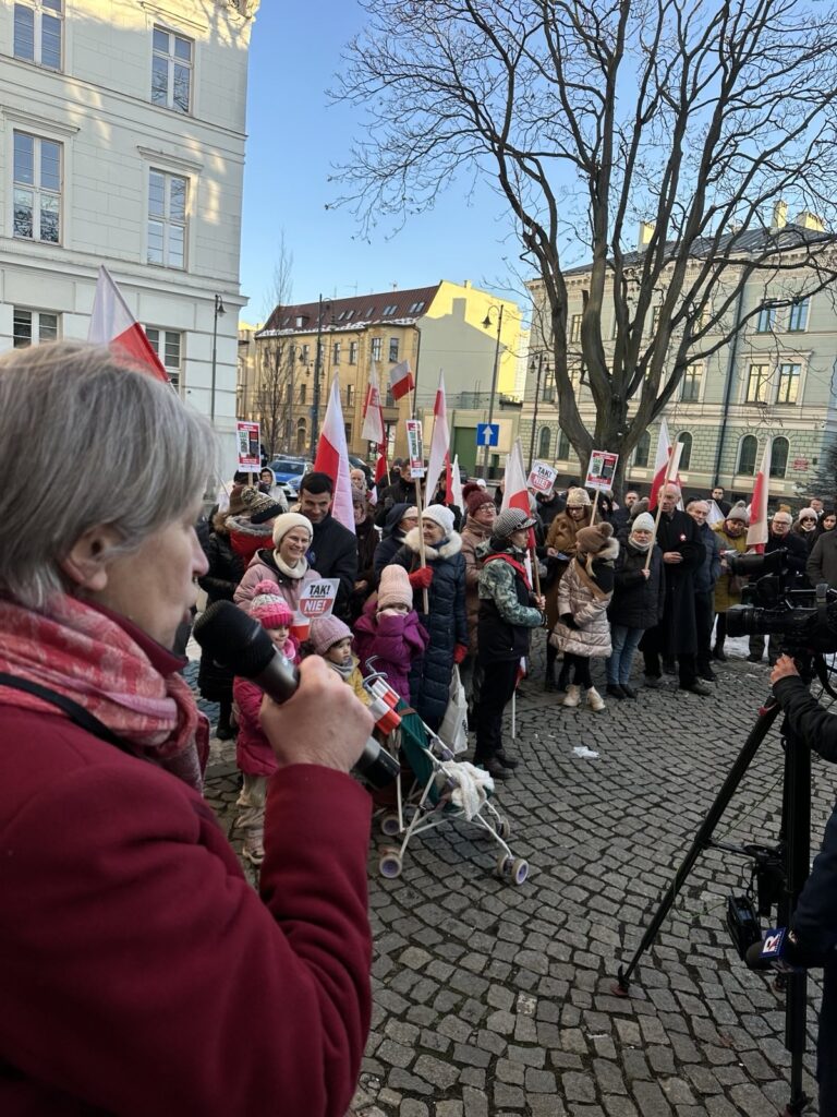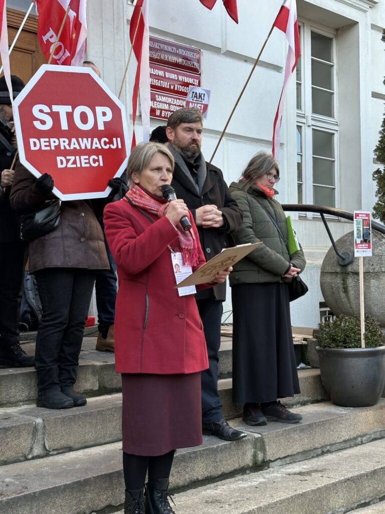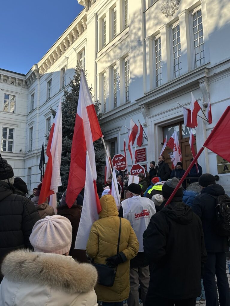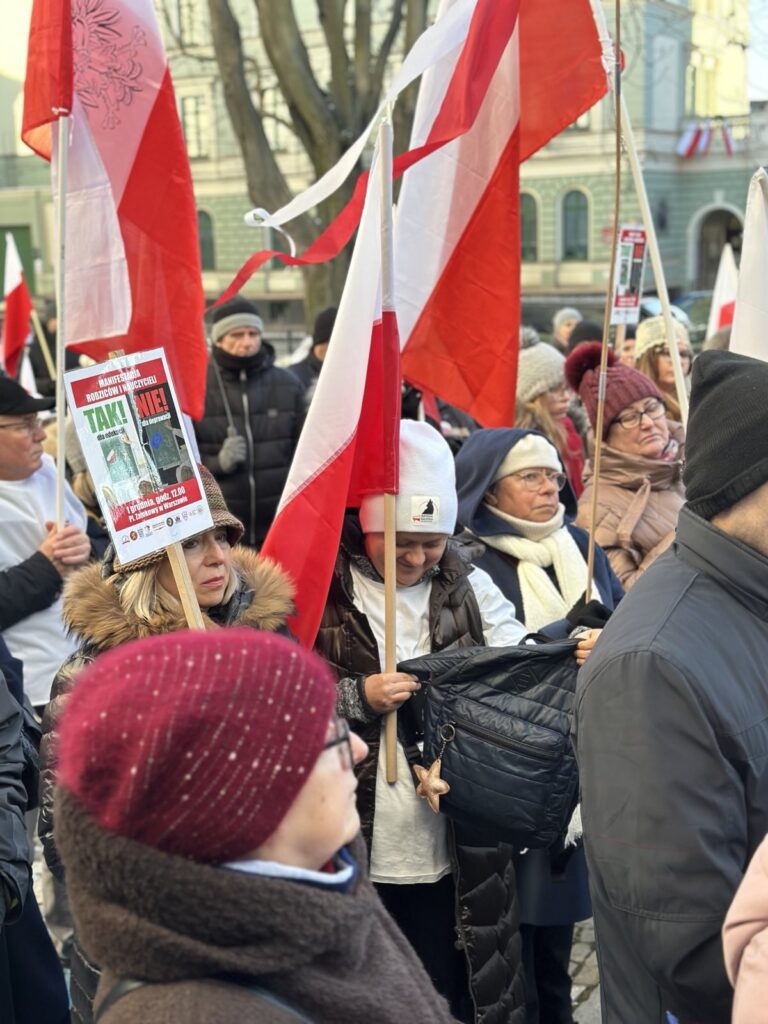 Stanęliśmy z transparentami i flagami w obronie dzieci i młodzieży, przeciwko wprowadzeniu tzw. edukacji zdrowotnej oraz w obronie lekcji religii i wychowania do życia w rodzinie.