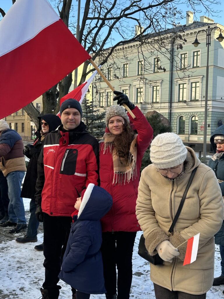W gronie manifestujących wspólnie odśpiewaliśmy Hymn Polski, Rotę, pieśń Ojczyzno ma oraz życzenia dla wszystkich Polaków, pieśń Jana Pietrzaka – Żeby Polska była Polską.