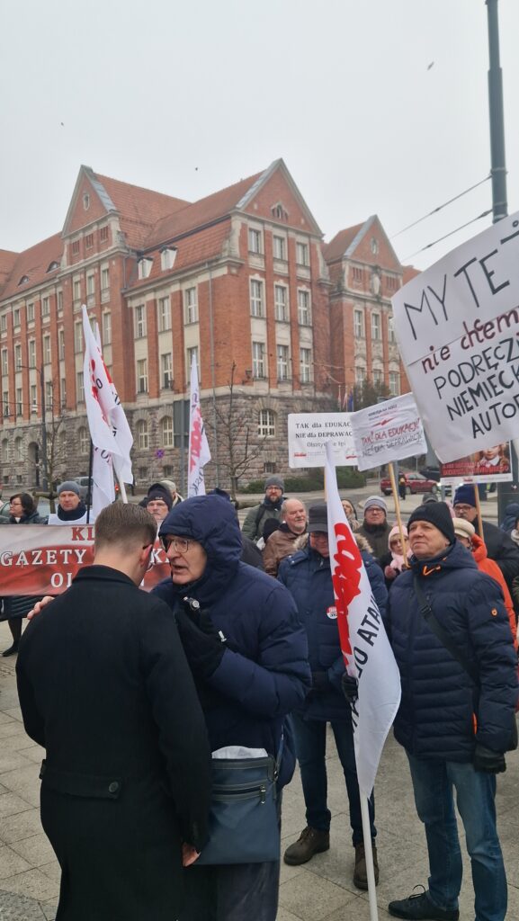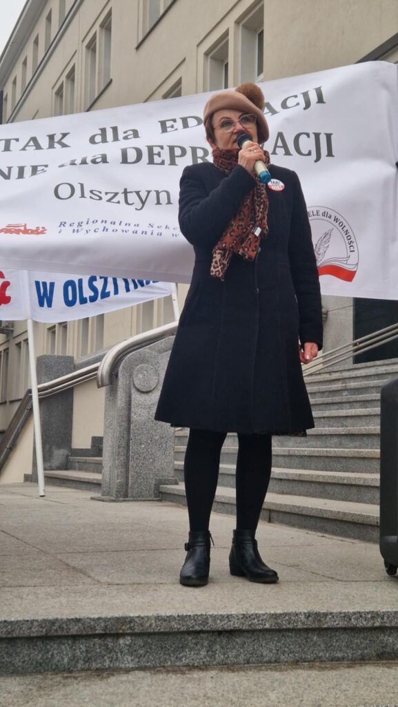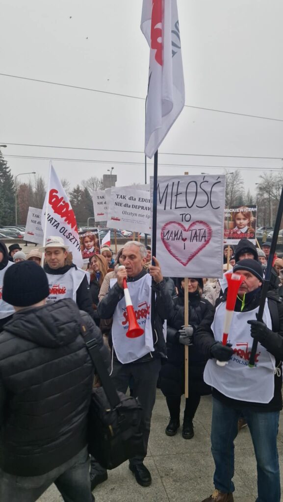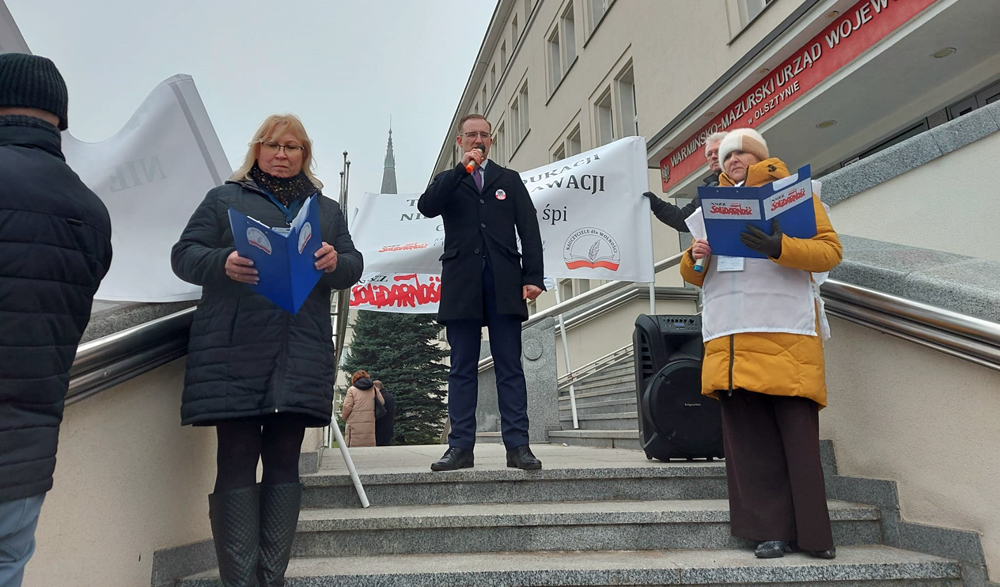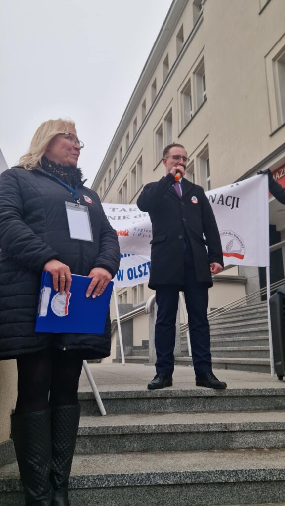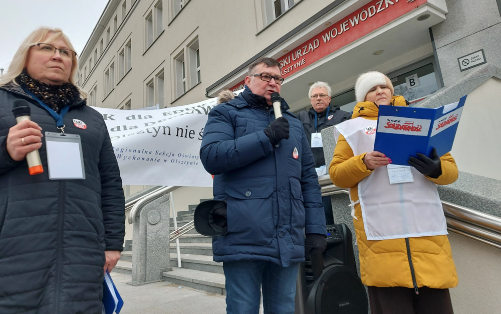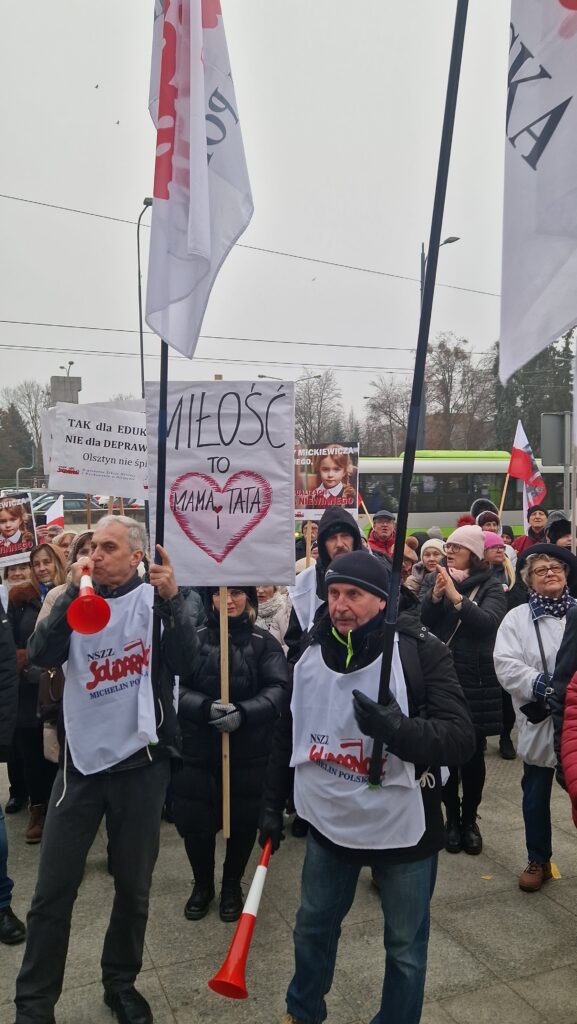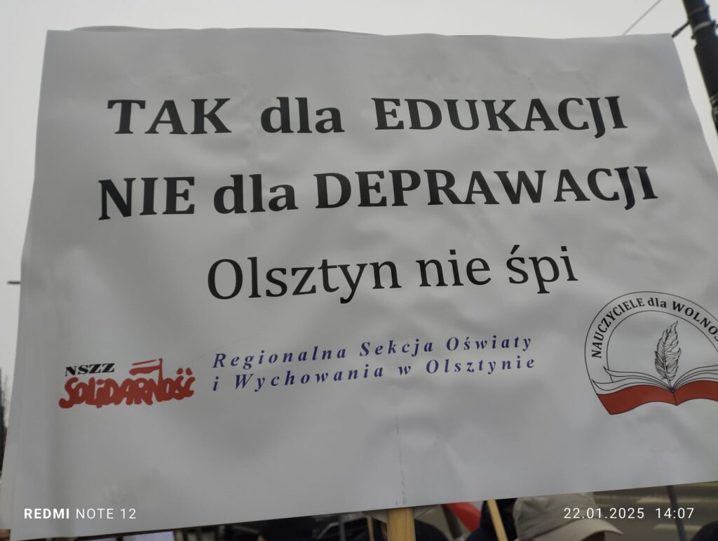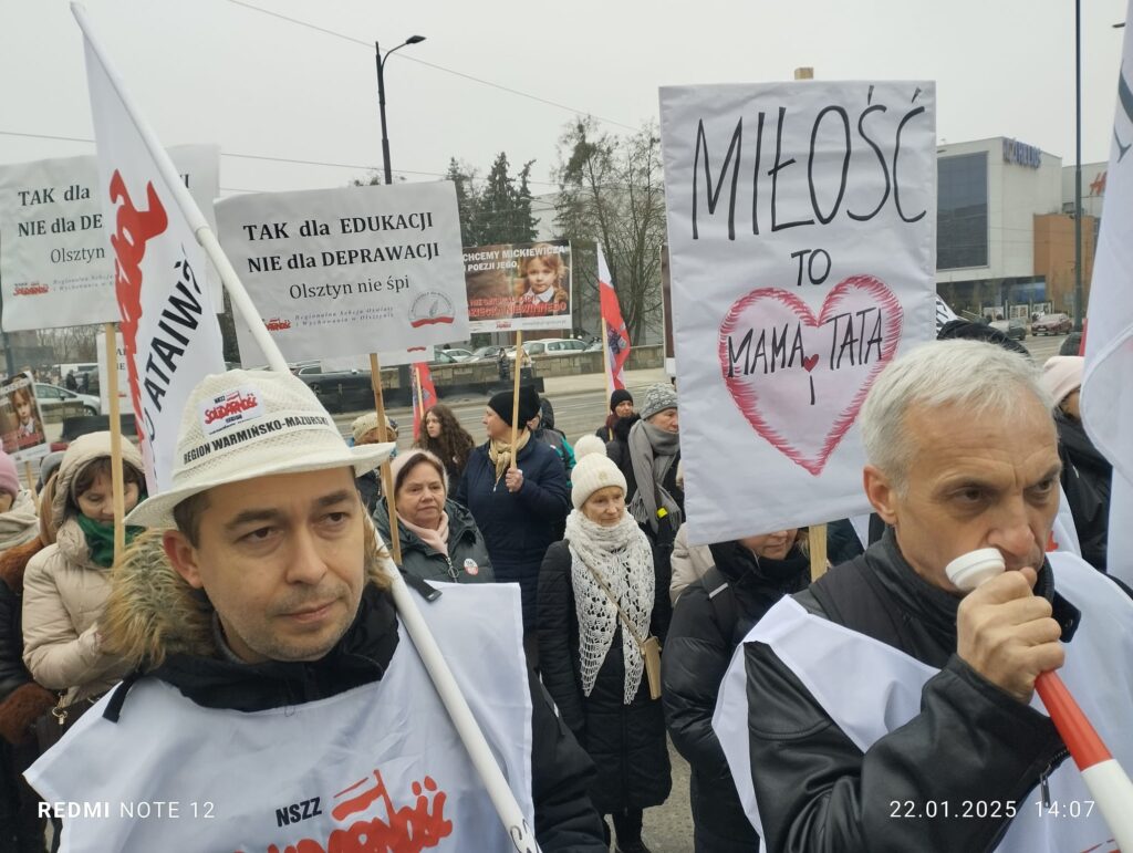 Dziś, 22 stycznia w Olsztynie pod Urzędem Wojewódzkim odbyła się manifestacja „Tak dla Edukacji, Nie dla Deprawacji” zorganizowana przez Stowarzyszenie „Nauczyciele dla Wolności” oraz Regionalną Sekcję Oświaty i Wychowania NSZZ Solidarność