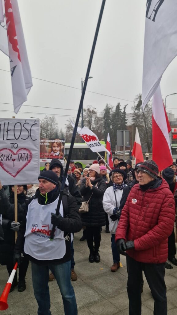 o niebezpieczeństwach, jakie niesie edukacja zdrowotna zaplanowana w treściach podstawy programowej oraz rozdawali ulotki informacyjne. Obecni byli rodzice, dziadkowie