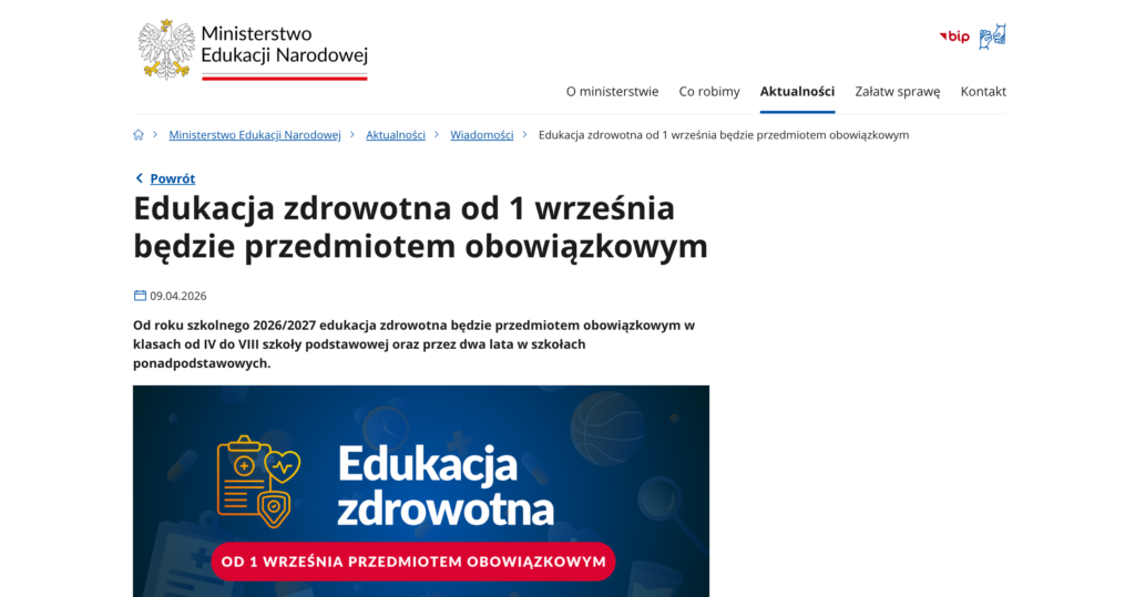Skandaliczy powrót do koordynacji prac zespołu przez promotora masturbacji!Utworzone przez admin / 10 kwietnia, 2026 https://www.gov.pl/web/edukacja/edukacja-zdrowotna-od-1-wrzesnia-bedzie-przedmiotem-obowiazkowym