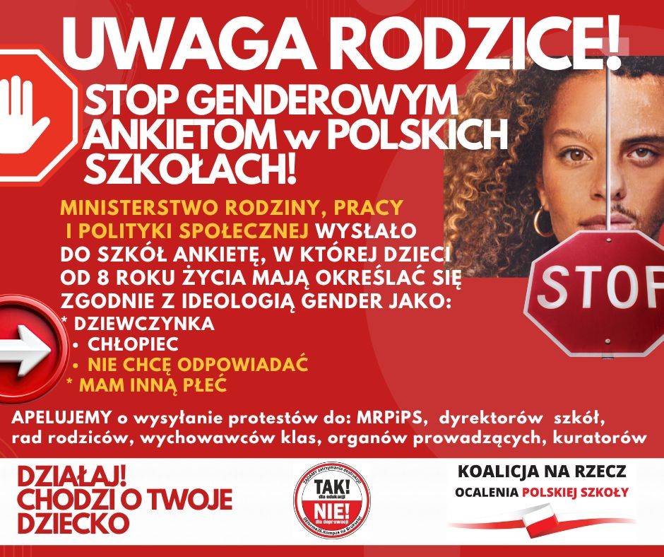 Sprzeciwiamy się ankietom rozesłanym do wszystkich polskich szkół! Przestrzegamy dyrektorów i nauczycieli przed przekazywaniem ankiet uczniom!
